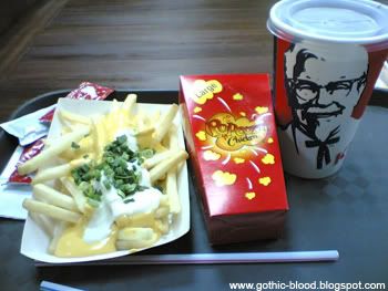 When the rain wasn't pouring that heavy, we ran to KFC for our lunch!